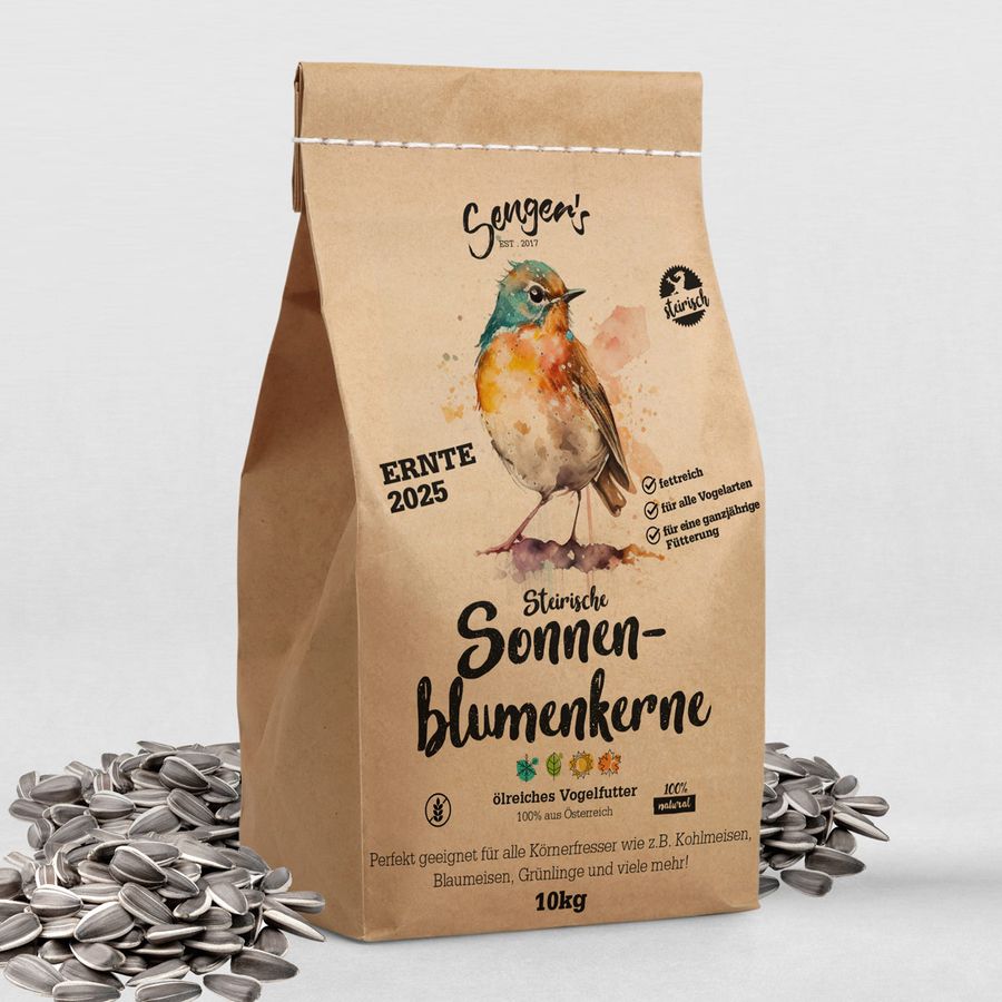 Sengers Sonnenblumenkerne Gestreift, Wildvogelfutter für Sommer & Winter, Ideal für Singvögel, Vogelfutter für das Ganze Jahr aus der Steiermark 10kg Sack