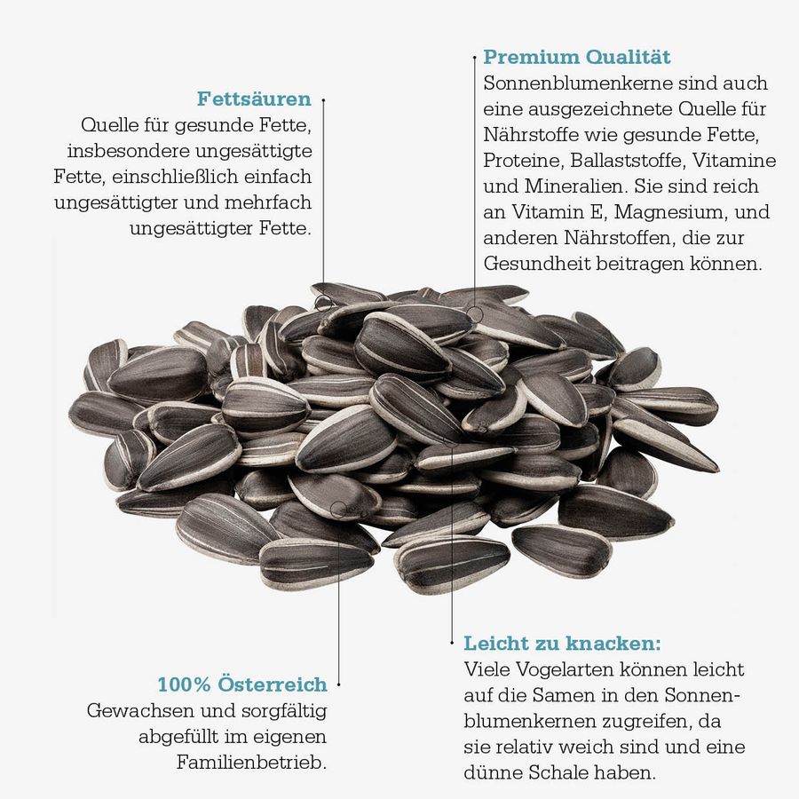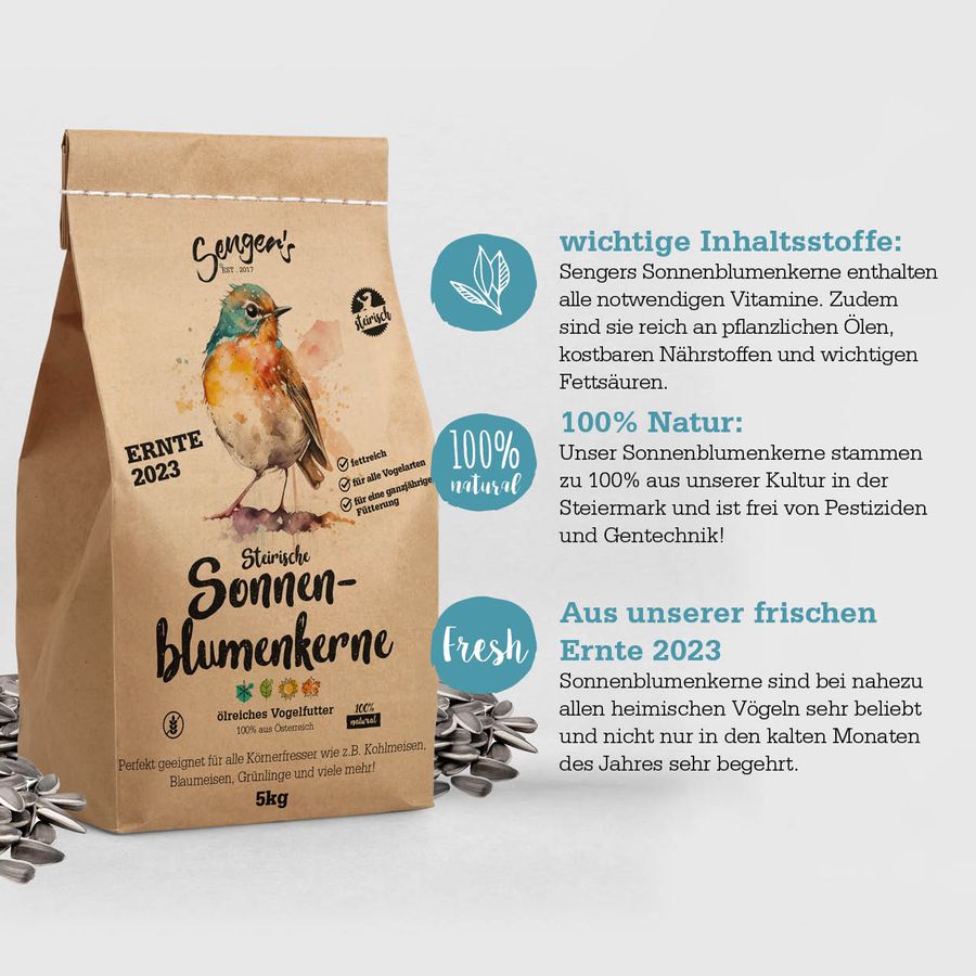 Sengers Sonnenblumenkerne Gestreift, Wildvogelfutter für Sommer & Winter, Ideal für Singvögel, Vogelfutter für das Ganze Jahr aus der Steiermark 5kg Sack