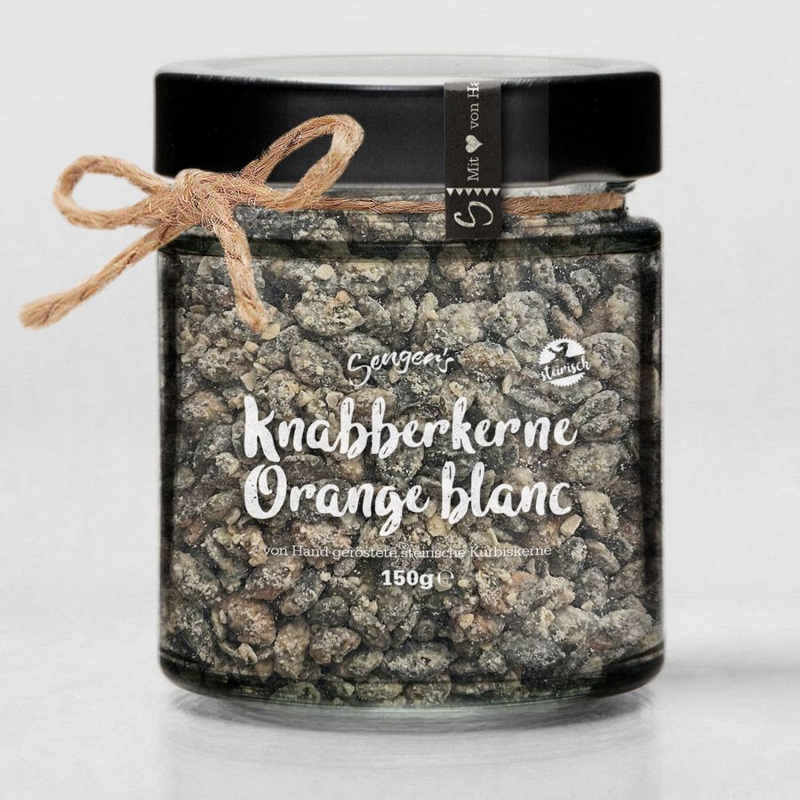 Unsere steirischen Kürbiskerne treffen auf feinste weiße Kuvertüre und ein zart-fruchtiges Orangenöl – eine harmonische Kombination aus nussigem Crunch, cremiger Süße und frischer Citrusnote. Schonend geröstet und sorgfältig umhüllt, entsteht ein besonderer Snack, der Knusprigkeit mit Eleganz verbindet.