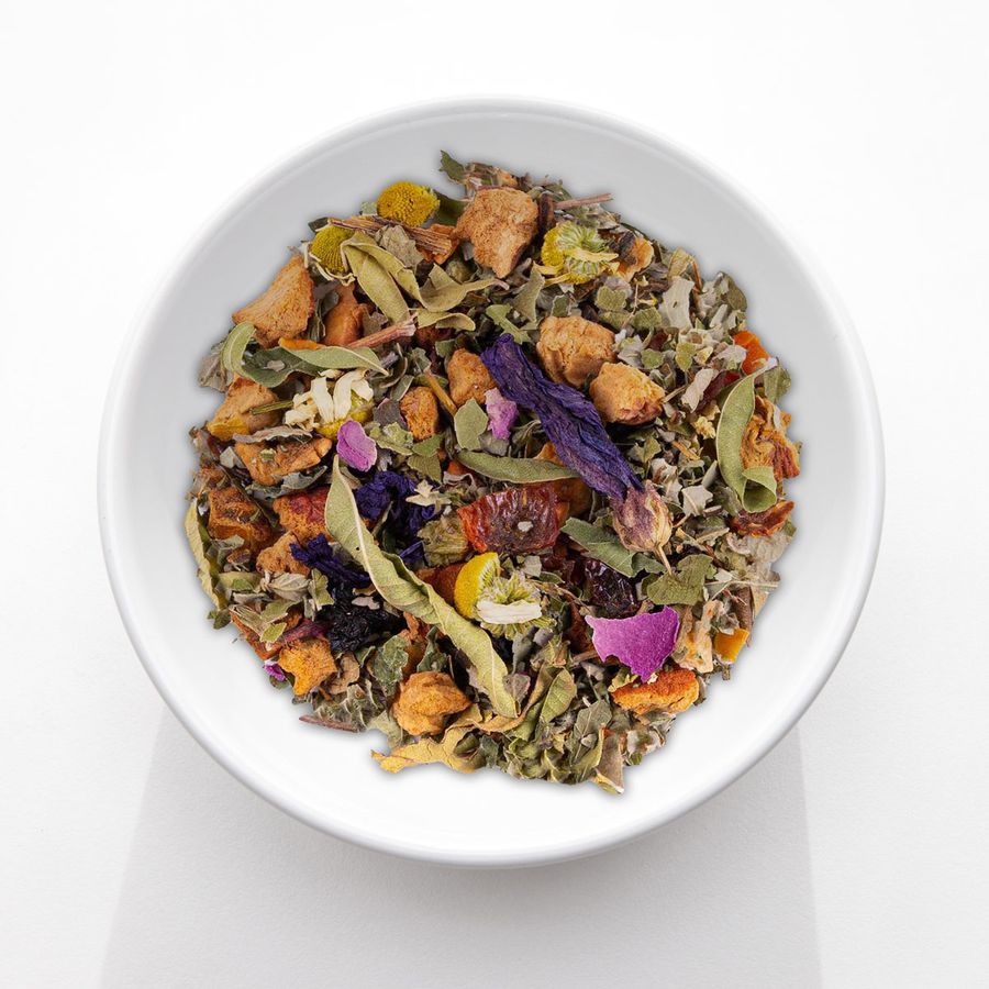 Blüten und klassische Kräuter wie Kamille, Rosenblüten und Malve runden den Geschmack harmonisch ab.